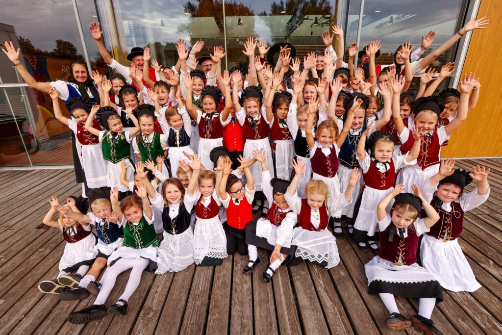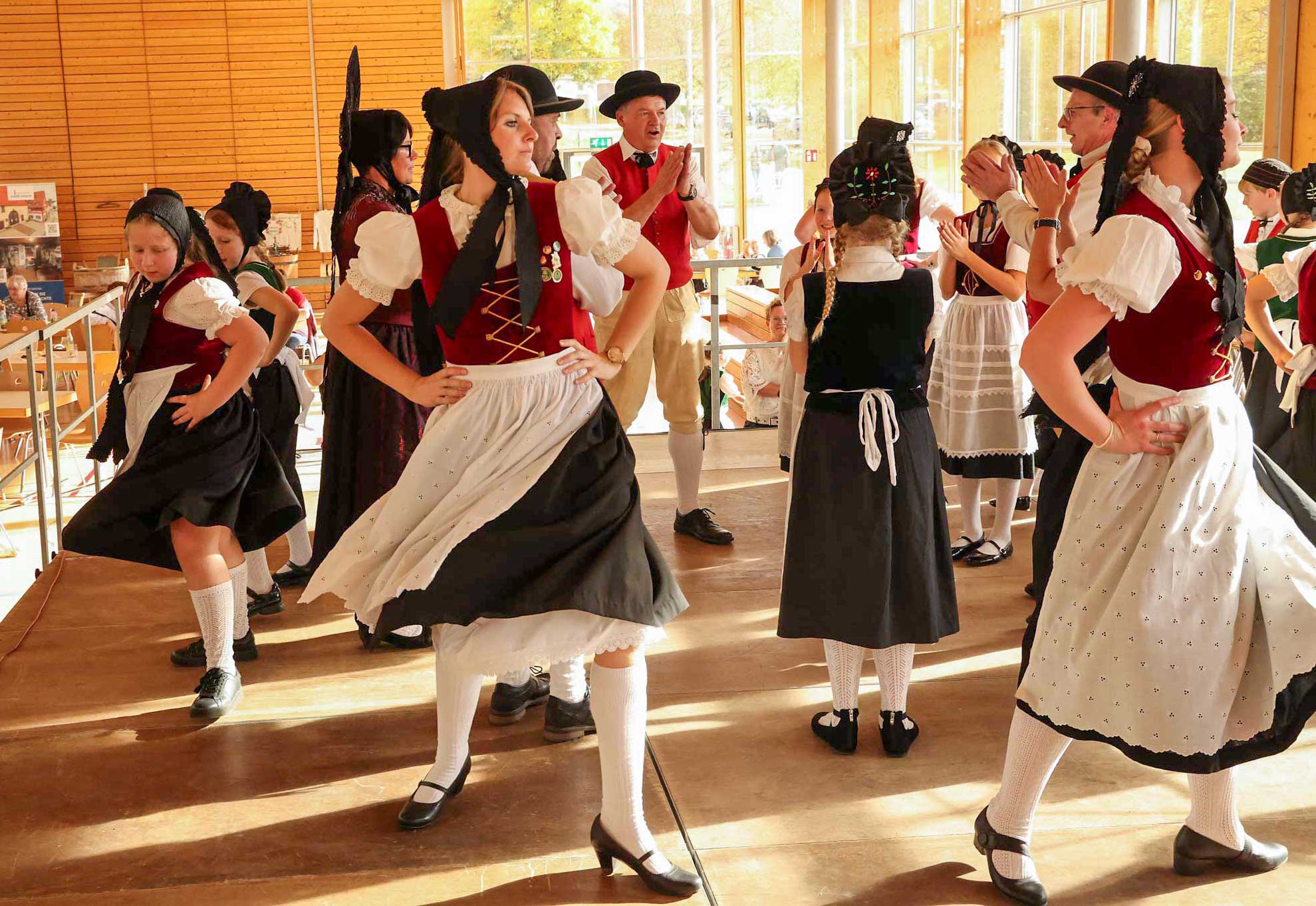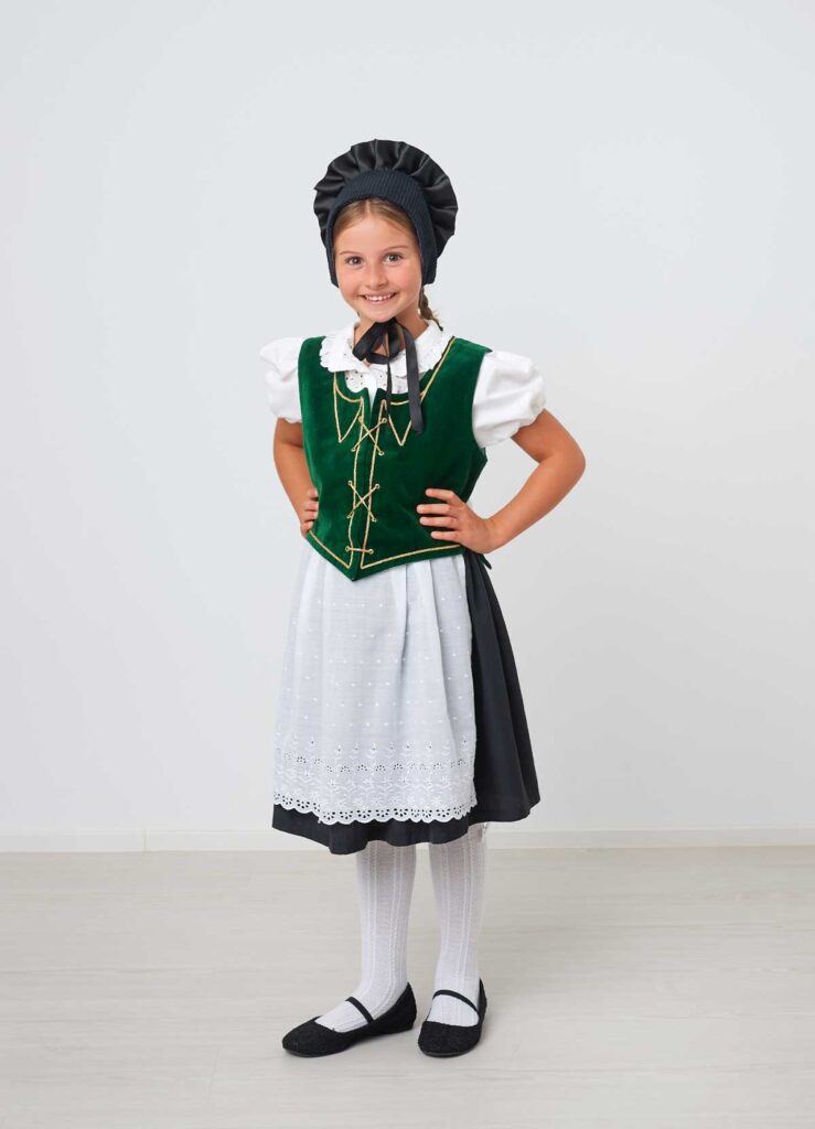 Die Mädchen tragen ebenfalls die Jungfrauentracht mit Leibchen und Schürze.